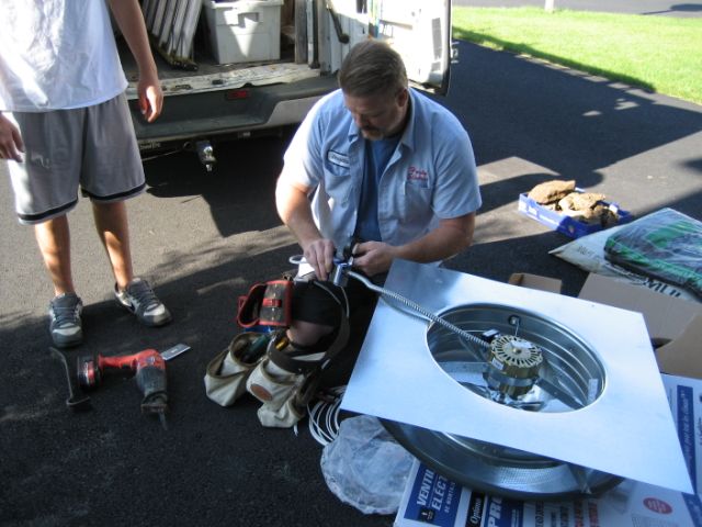 All attic fan installations come with LIFETIME WARRANTY attic fan, thermostat, disconnect switch, pull chain light, Ten Year Labor Warranty and a gutter cleaning, within reason.